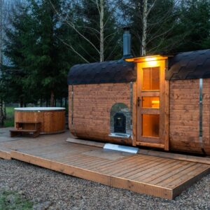 Wybierając się do Butryn, możesz skorzystać z naszej łaźni na świeżym powietrzu. Balia jak i sauna pomieszczą 6-8 osób. Atrakcja znajduje się tuż przy budynku pokoi gościnnych.